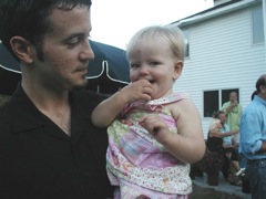 Tricks Lite (Plugged In this time - with Steve on e-drums and Tim on bass) played at Matt and Heather Maloley's backyard for a bonfire / pigroast / wedding / house warming / baby celebration / fun rock n roll back-yard blast in Grand Haven. Like our last week's backyard Tricks-Lite wedding party, the uninvited police made two appearances to make sure no one was having "too much fun". Thanks to all the Tricks family & friends who showed up to Heather & Matt's open house Tricks party.