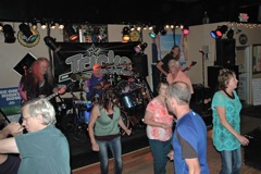 Saturday? I'm glad you asked. I say we have another contender for "Best Bar Night of 2016". It was definitely a Tricks Crowd. They knew how to push our buttons and get that energy level up. You didn't hear this from me, but both Steve and Ozzy texted Rick & Krys around 4pm to say that they did not feel good. Rick & Krys were mentally prepared to carry the slack from the two sickies. But, when the crowd lit a fire under out butts, Steve and Ozzy rose to the occasion. We were celebrating Steve's birthday, along with a couple other guys. So, it was party, party, party! Lots of shots went to the drummer, and he was feeling no pain, taking the band out on a limb or two before the night was over. What a ride! The wild crowd didn't let up for a minute. Check out these pictures for lots of smiling faces and wild action on the dance floor. Thanks to everyone who traveled to see us. Thanks to Josh the owner and the Hotel staff for doing such an excellent job - good food, good drinks, great dance floor. Thank you dancers! Thanks to all the birthday boys; thanks for bringing your party to the Wayland Hotel with Tricks.